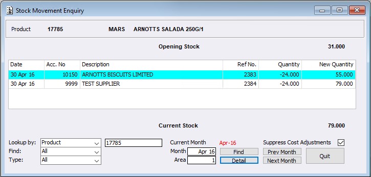 Stock Movement Enquiry > Detail button