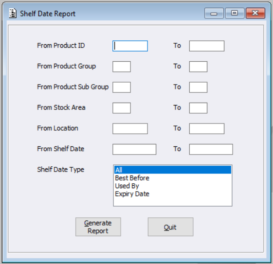 This new menu will enable users to create a report on Product Shelf Date details.