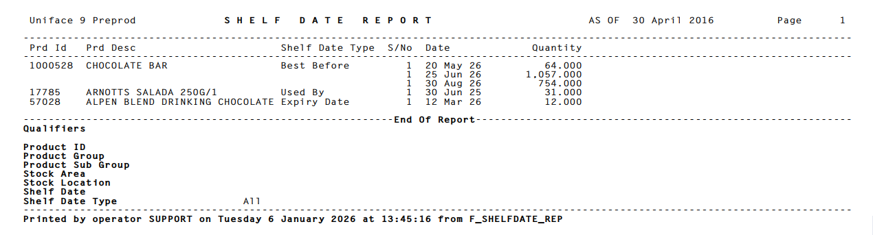 New Menu > Shelf Date Report