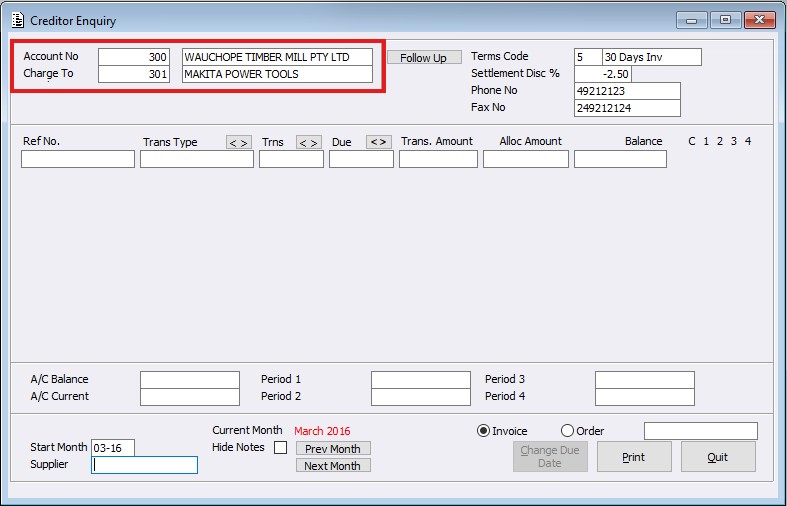 Creditor Enquiry > new field Posted on February 19, 2026 by Janelle Lodge Within the Creditor Enquiry screen, a new field called ‘Charge To’ has been created. When a loaded Supplier Account has a Charge To Account linked, the Charge To Number and Name will be displayed.