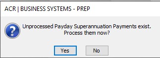 - Selecting No will skip Payday Superannuation Payments enabling them to be manually processed later, and continue with the Payroll Sheet process