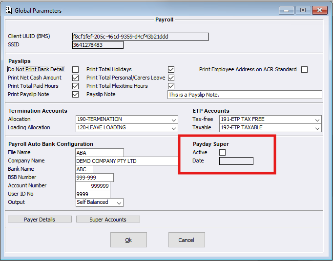 When making the ‘Payday Super’ configuration active, a number of features are then implemented within the Payroll System: